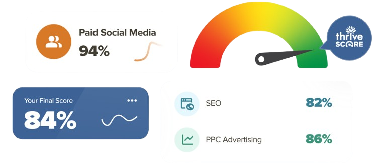 The Thrive Score is a comprehensive evaluation process designed to assess our client’s digital marketing efforts. We utilize a scoring matrix with over 150 factors that gauge the effectiveness of the client’s current approach, providing insights into their strengths and highlighting opportunities for improvement.