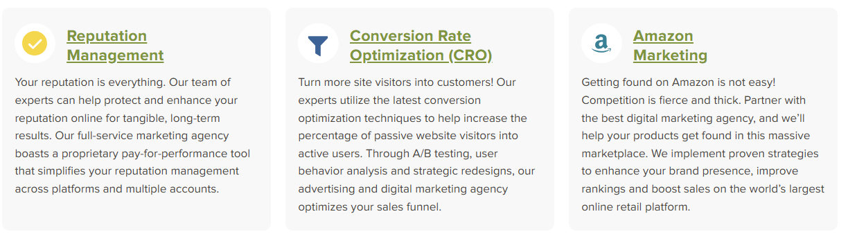 Our digital marketing services include a combination of consultation and management. Our team of 160+ online marketing experts can help you with search engine optimization (SEO), pay-per-click (PPC) ads, Amazon store optimization, copywriting, conversion rate optimization (CRO) and much more. We also offer expert web design and development services for eCommerce and B2B companies.